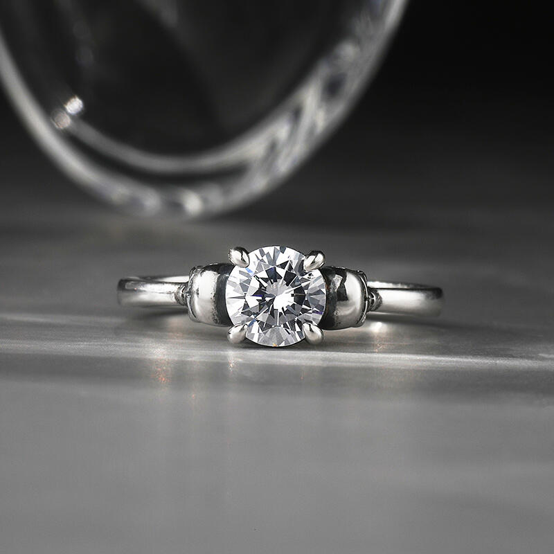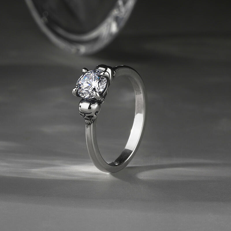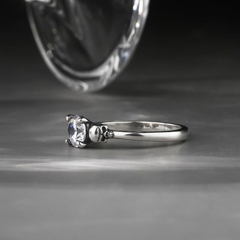 Jeulia "Zwei Totenköpfe" Verlobungsring aus Sterlingsilber mit Rundschliff