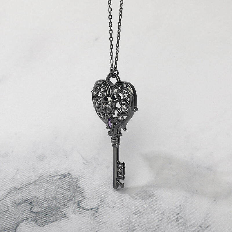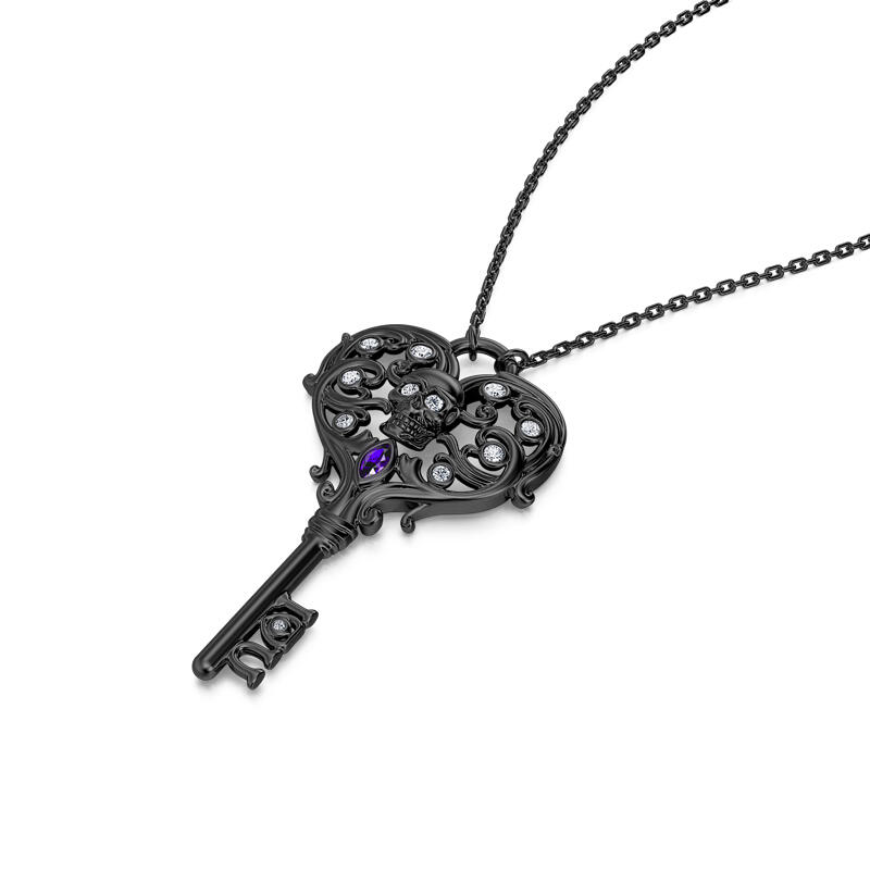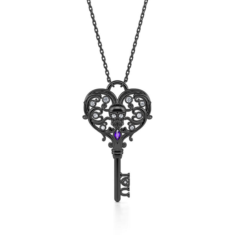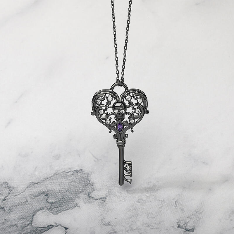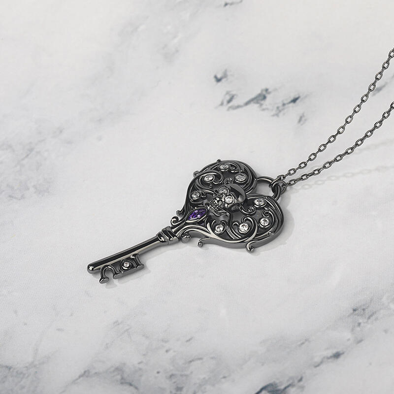 Jeulia "Never Ending Love" Totenkopf Schlüssel Design Sterling Silber Halskette