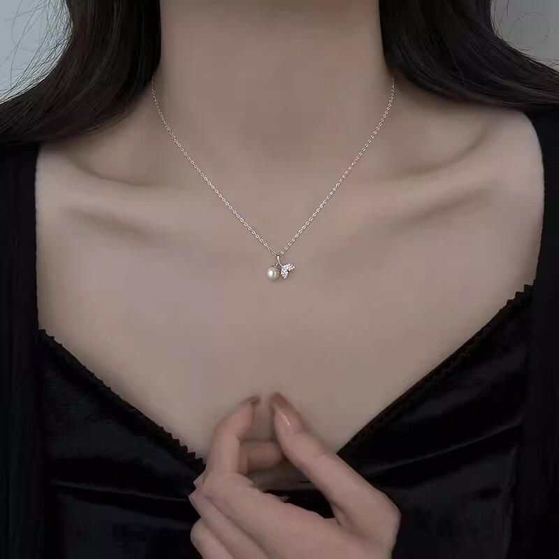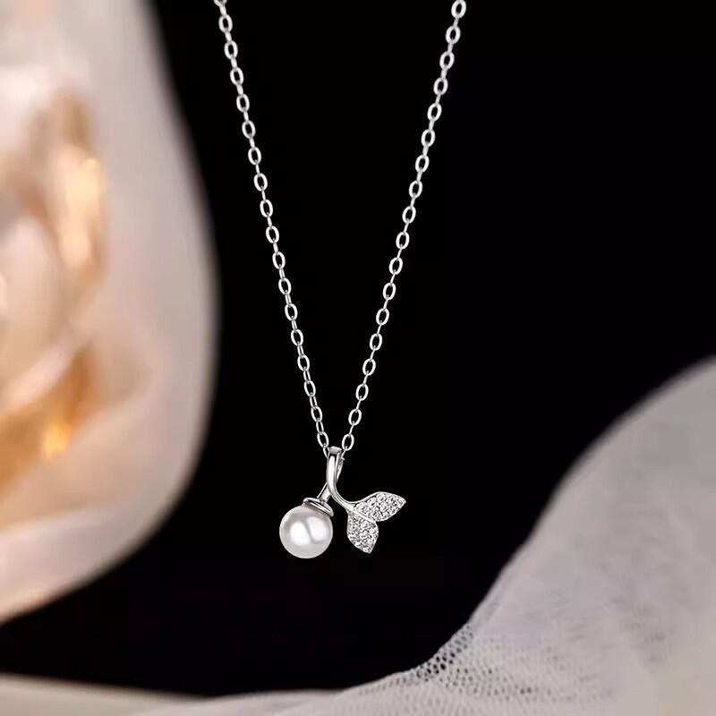 Jeulia "Geheimnis der Sirenen" Fischschwanz-Design Weiße Perle Sterling Silber Halskette