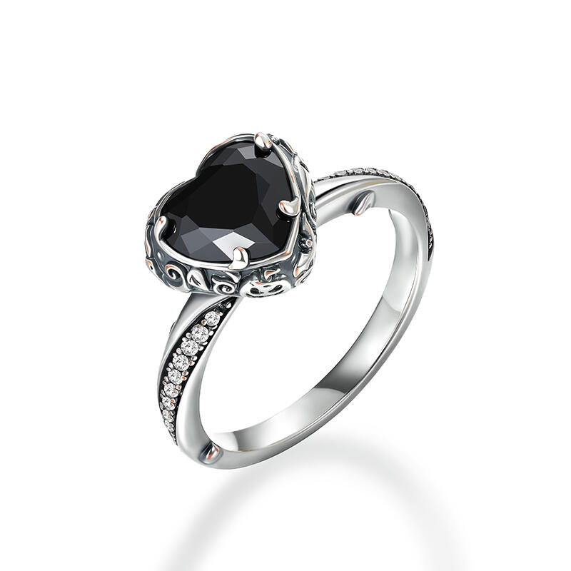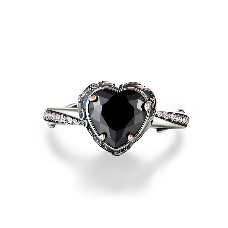 Jeulia Antik Finish Schwarzes Herz Twist Ring aus Sterling Silber