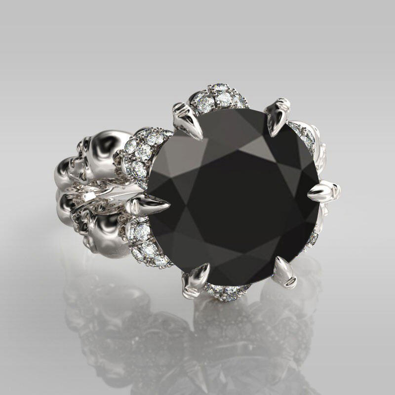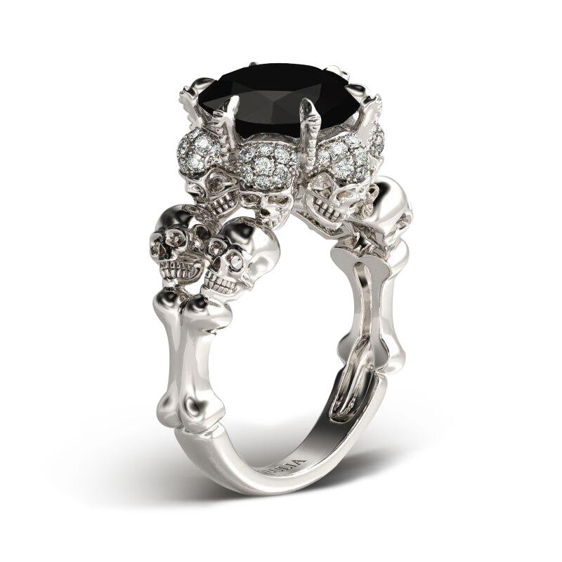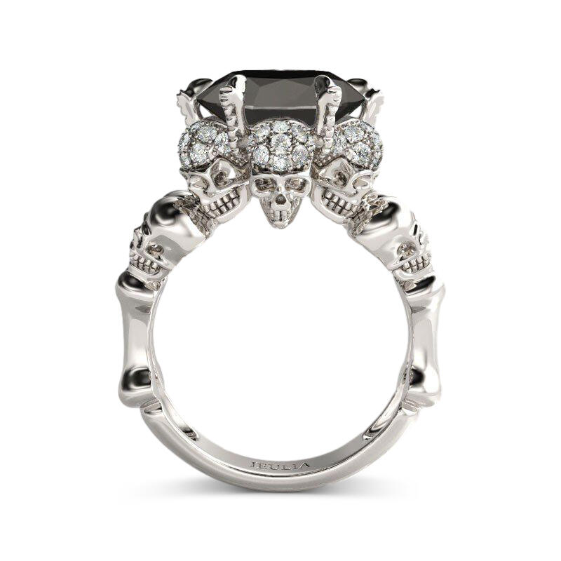 Jeulia Großer Mittelstein Rundschliff Sterling Silber Schädel Ring