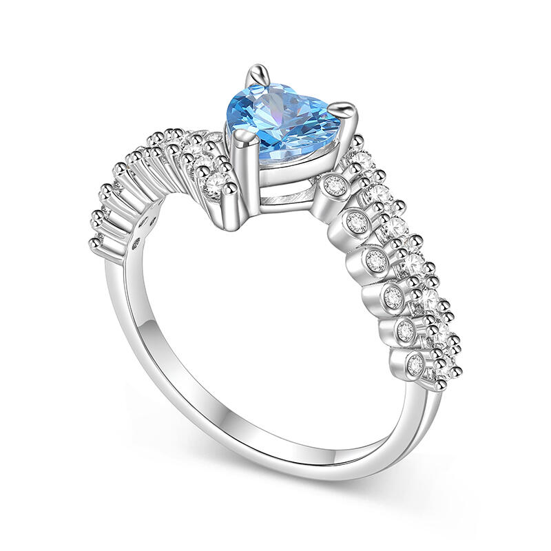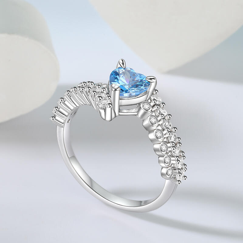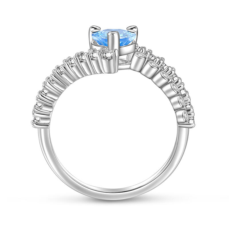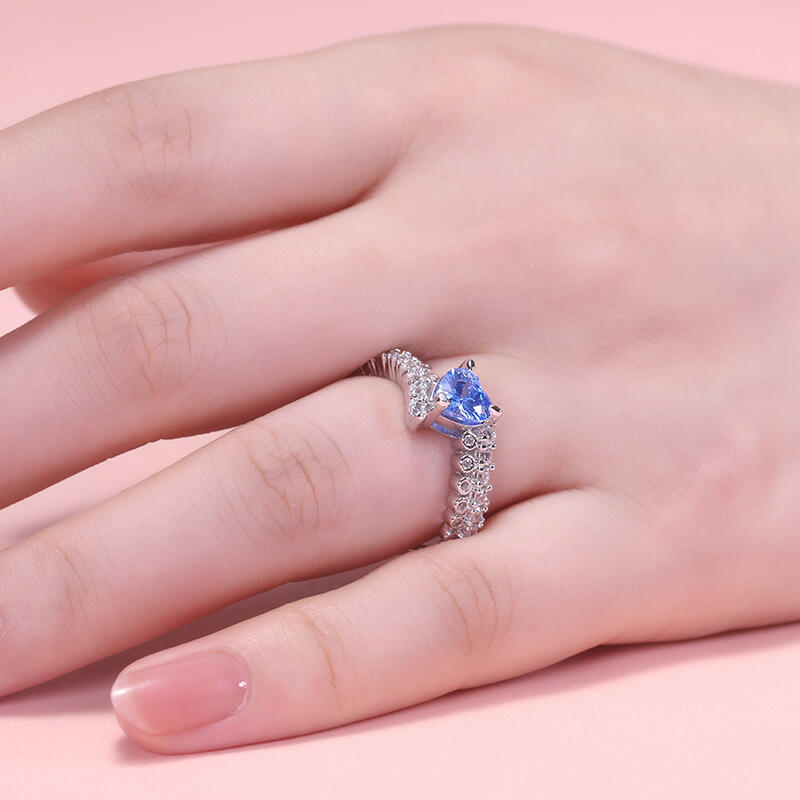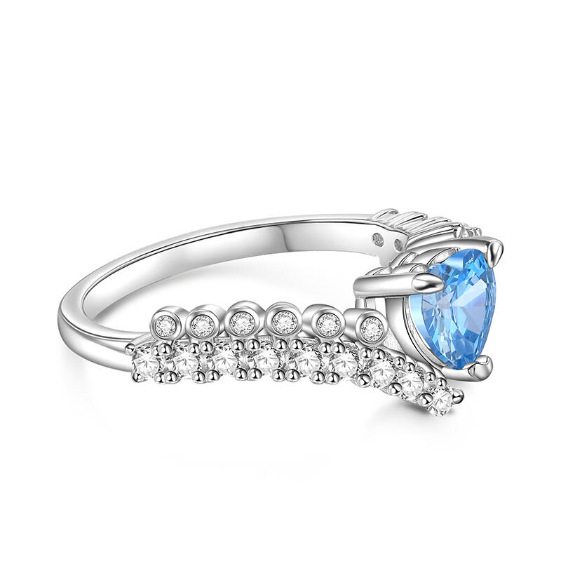Jeulia Blaues Herz Versprechen Ring Bypass Design Sterling Silber
