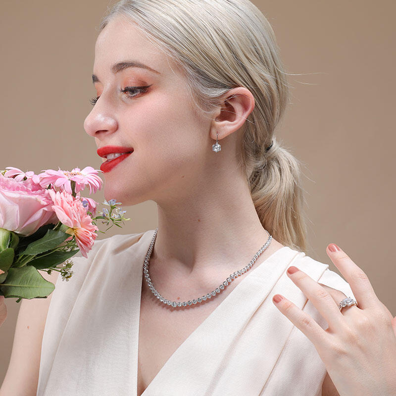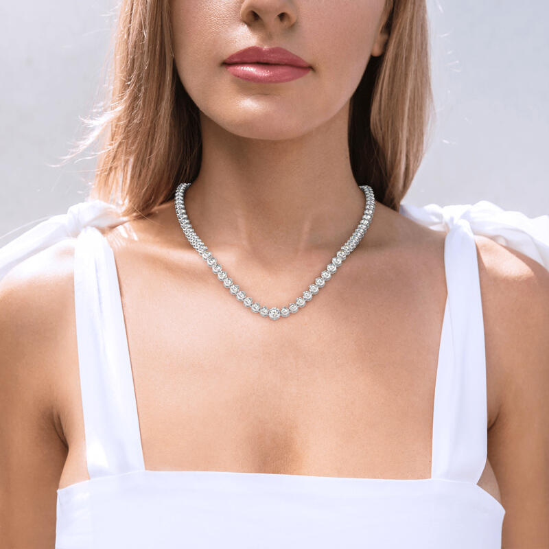 Jeulia Klassische Rundschliff Sterling Silber Tennis Halskette