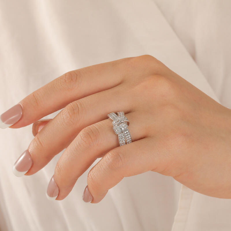 Jeulia Verzauberter Knoten Damen Ehering Bandring Sterlingsilber