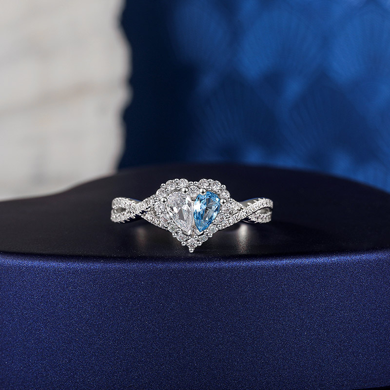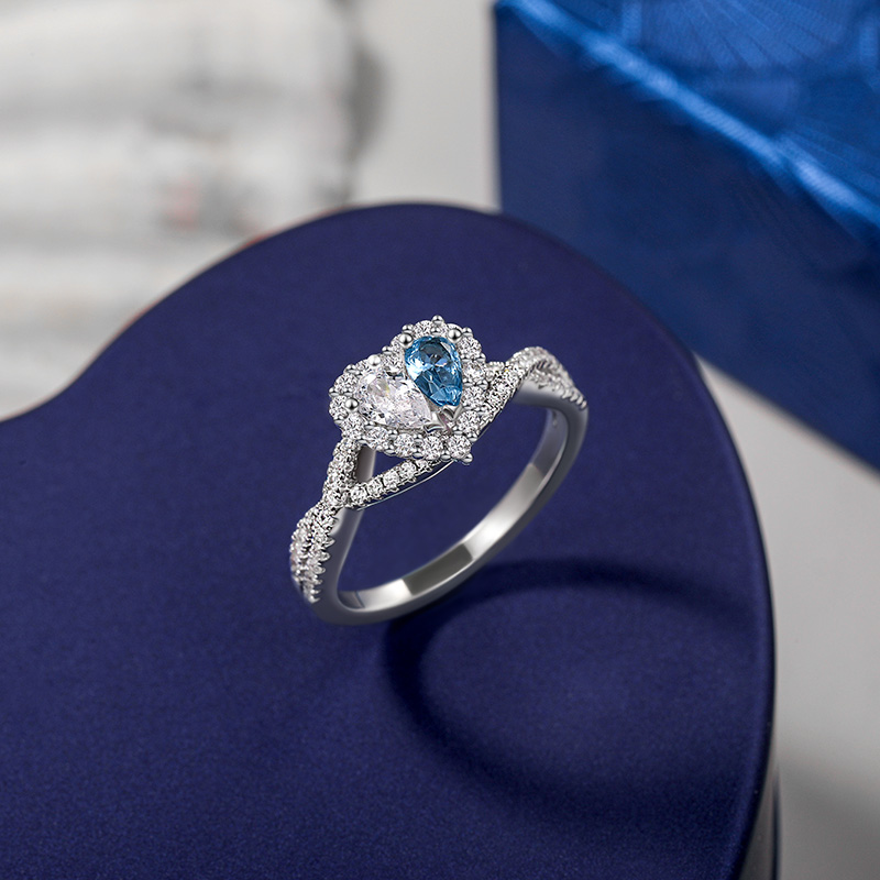 Dieser Halo-Doppel-Birne-Schneid-Kustom-Herz-Versprechen-Ring mit gedrehtem Band hat ein einzigartiges Zentrum mit zwei Steinen, mit zwei Birne-geschliffenen Edelsteinen, die zusammen liegen, einen exquisiten herzförmigen Umriss abzeichnend, wie zwei Herzen, die sich verflechten, um von ewiger Liebe zu sprechen. Der Körper des kustomisierten Versprechen-Rings ist von einem eleganten gedrehten Design inspiriert, umgeben von funkelnden mikroskopisch eingefassten Steinen, so hell wie ein Fluss von Sternen, dem Ring ein fließendes Gefühl der Hierarchie und dynamischer Schönheit verleihend. Die Metallfarbe und der Stein des Halo-Herz-Dreh-Versprechen-Rings können angepasst werden, mit jedem Detail zeigt es Handwerkskunst und jeder Strahl Licht erzählt eine einzigartige Geschichte. Es zu tragen ist wie Romantik und Eleganz auf die Finger zu legen, was Sie in jedem Moment, ob wichtig oder als täglicher Begleiter, mit einem einzigartigen Charme ausstrahlen lässt.