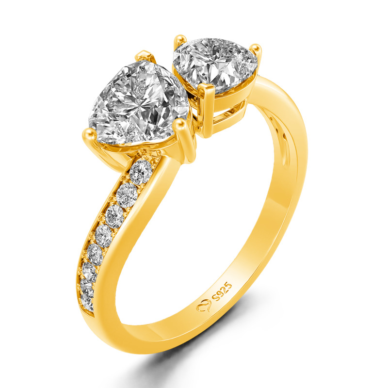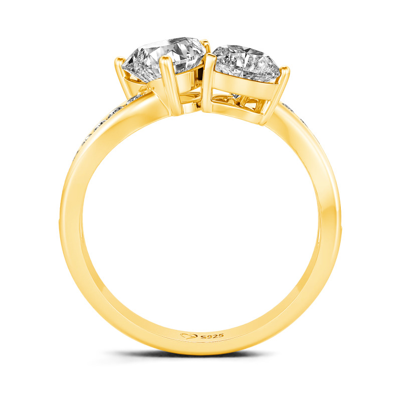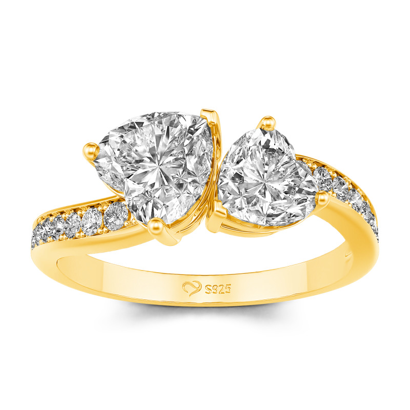 Jeulia Verlobungsring mit Herz und zwei Steinen im Wellenschliff aus Sterlingsilber