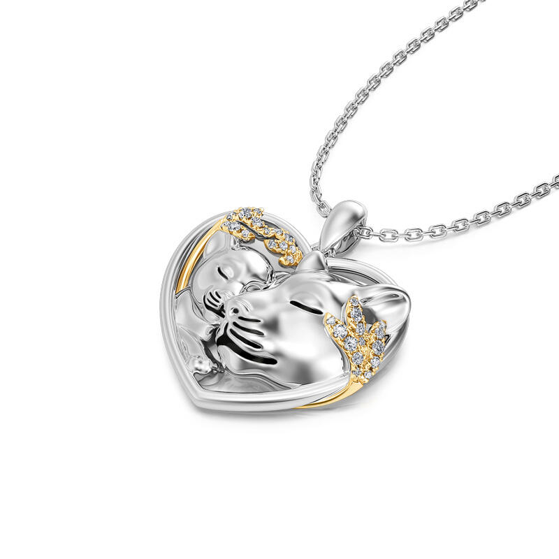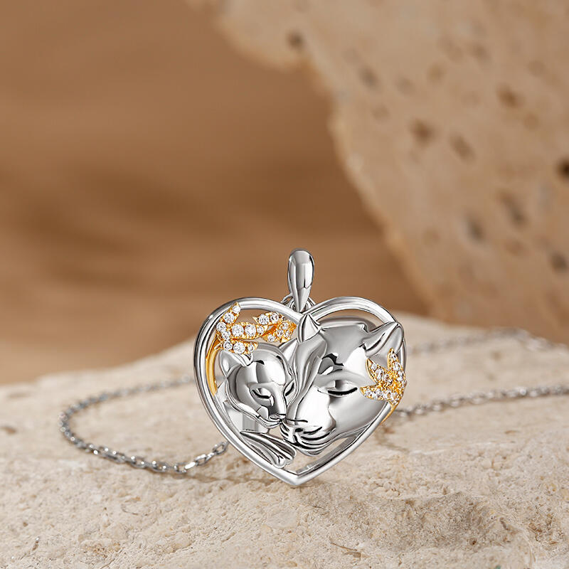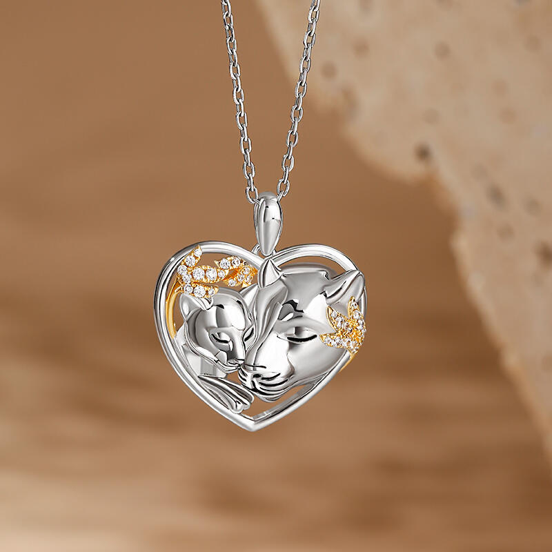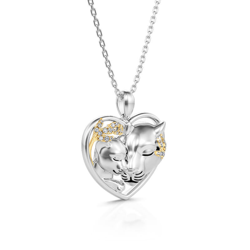 Jeulia "Huddle with You" Mama und Baby Löwe Sterling Silber Halskette