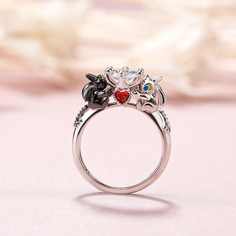 Jeulia Hug Me "Stärkste Romantik" Drachenpaar Rundschliff Sterling Silber Ring