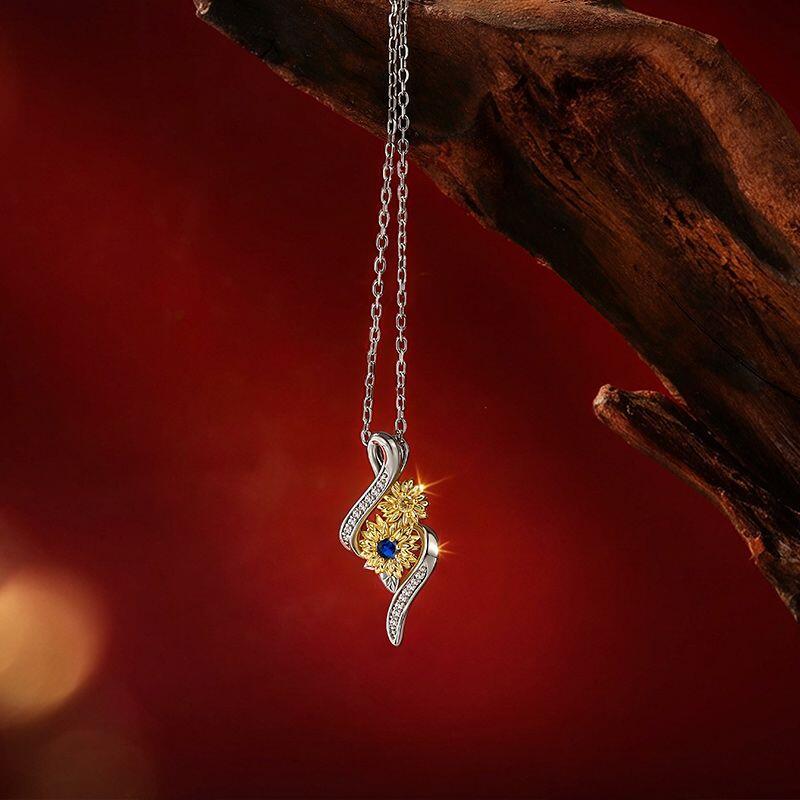 Die Jeulia Unendlichkeits-Sonnenblumen-Halskette ist ein wunderschön gearbeitetes Schmuckstück, das Eleganz und Bedeutung vereint. Aus hochwertigem Sterlingsilber gefertigt, besticht diese Unendlichkeits-Halskette mit einem atemberaubenden Design aus verschlungenen Wirbeln, die Ewigkeit und Liebe symbolisieren. Im Zentrum verleihen zwei goldene Sonnenblumen eine Note von Wärme und Helligkeit, ergänzt durch funkelnde Steine, die einen schimmernden Effekt erzeugen. Das Design fängt die Essenz von Natur und Weiblichkeit ein und macht diese Blumen-Halskette zum perfekten Accessoire für jeden Anlass. Ob Sie sich für ein besonderes Ereignis herausputzen oder Ihren Alltagsoutfits einen Hauch von Charme verleihen möchten – diese zweifarbige Halskette dient als liebevolle Erinnerung an Liebe und Positivität. Die Jeulia Unendlichkeits-Sonnenblumen-Halskette ist eine essentielle Bereicherung für jede Schmucksammlung.