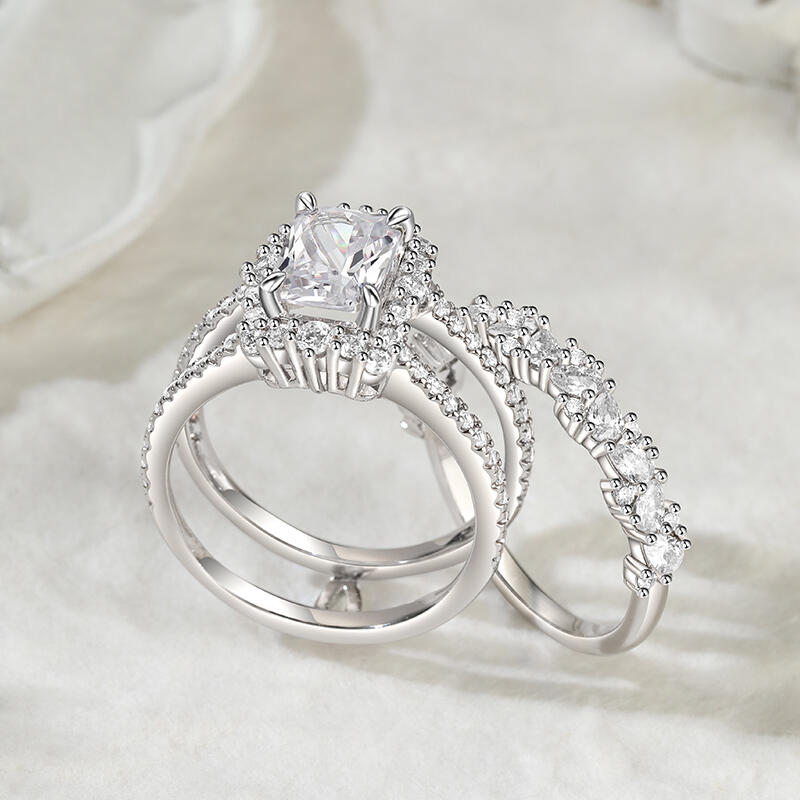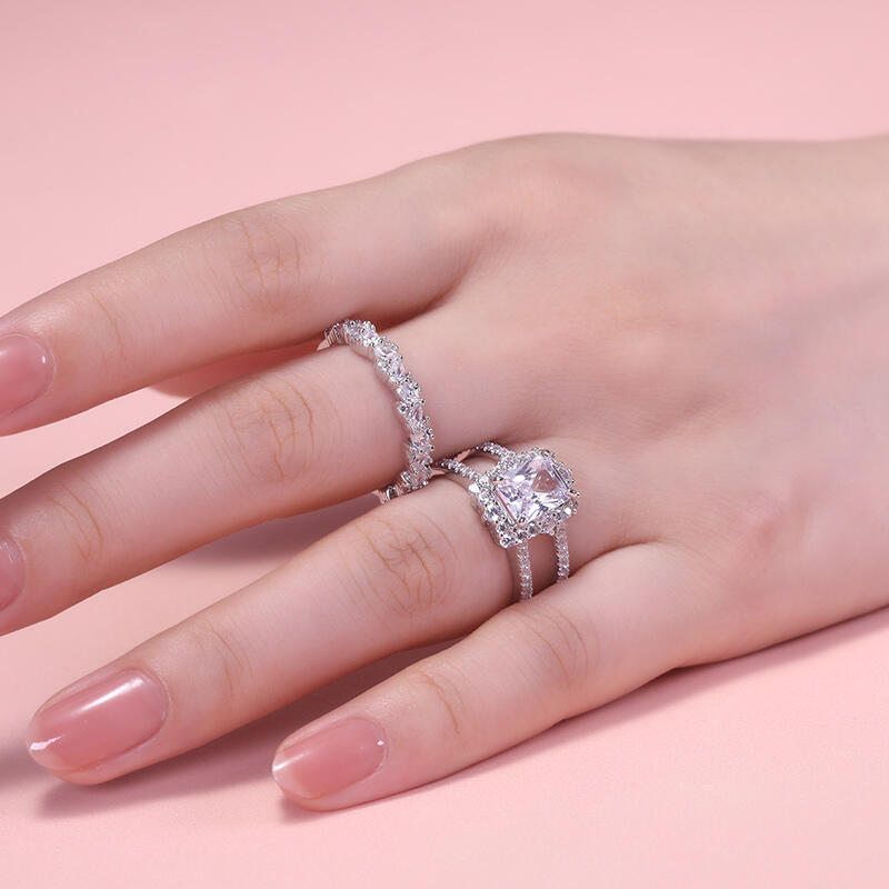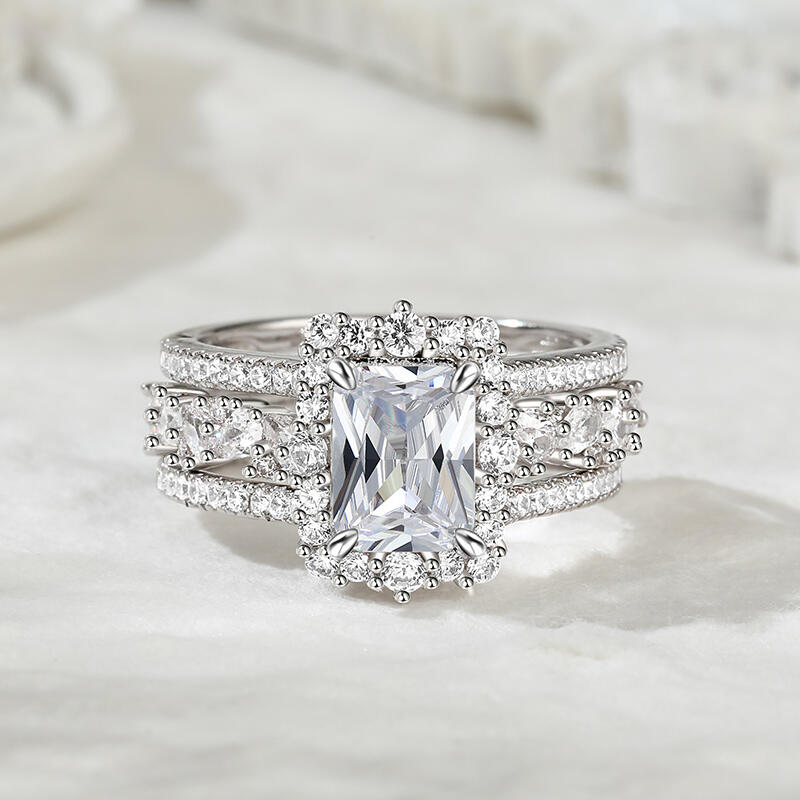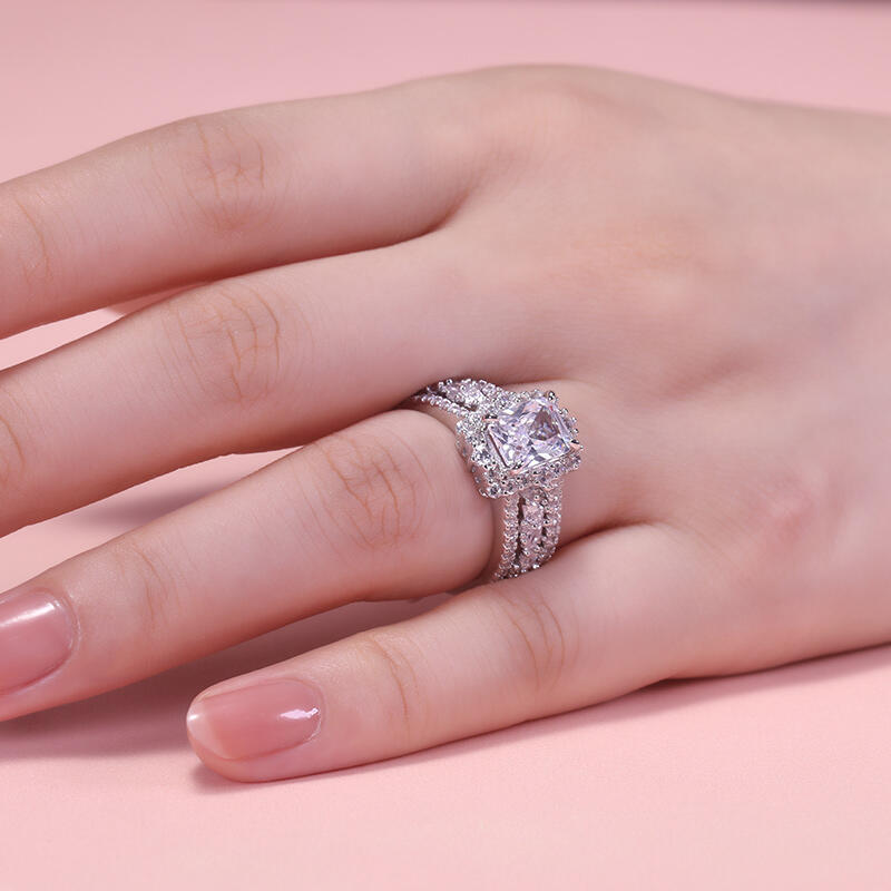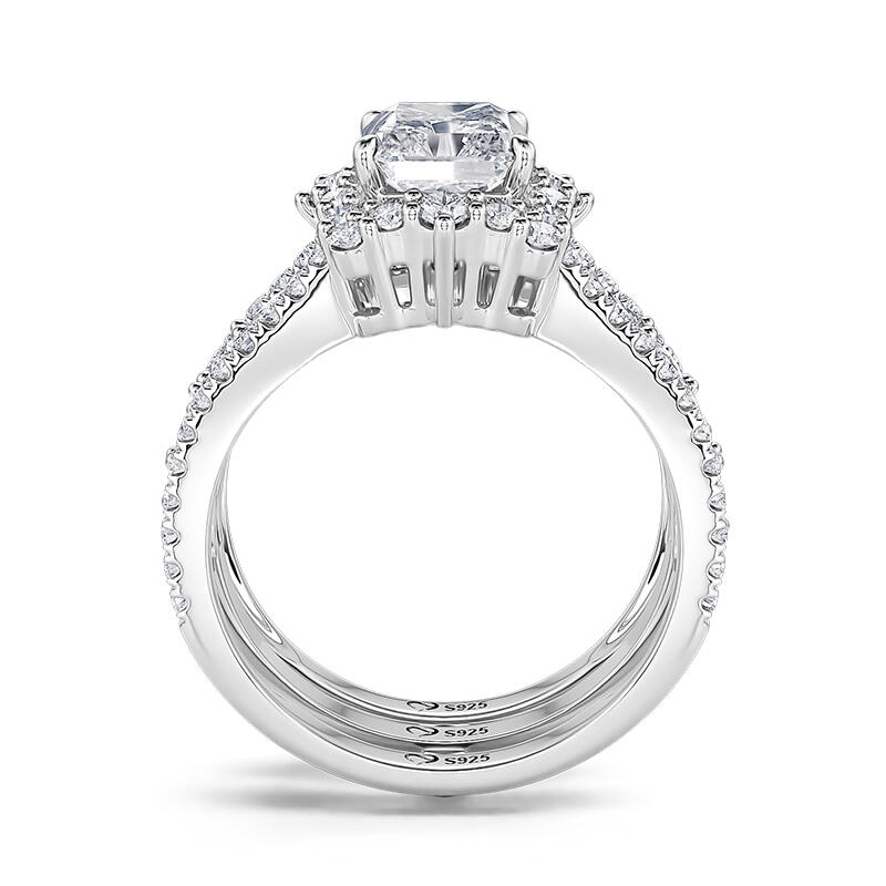 Jeulia Auswechselbarer Halo-Verlobungsring mit Strahlenschliff Sterling Silber