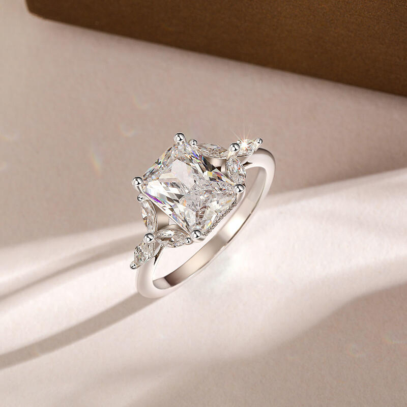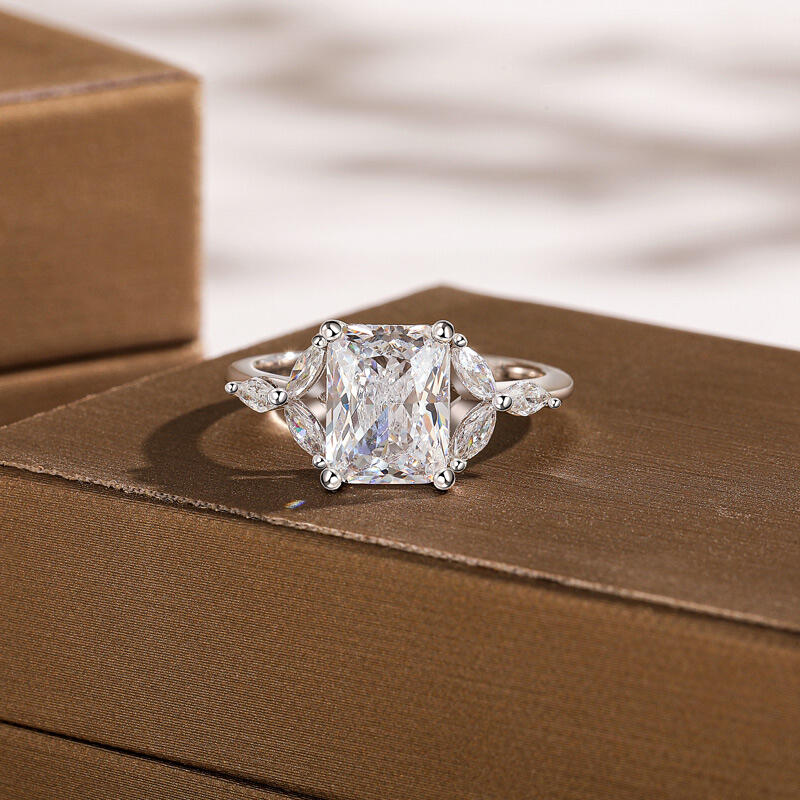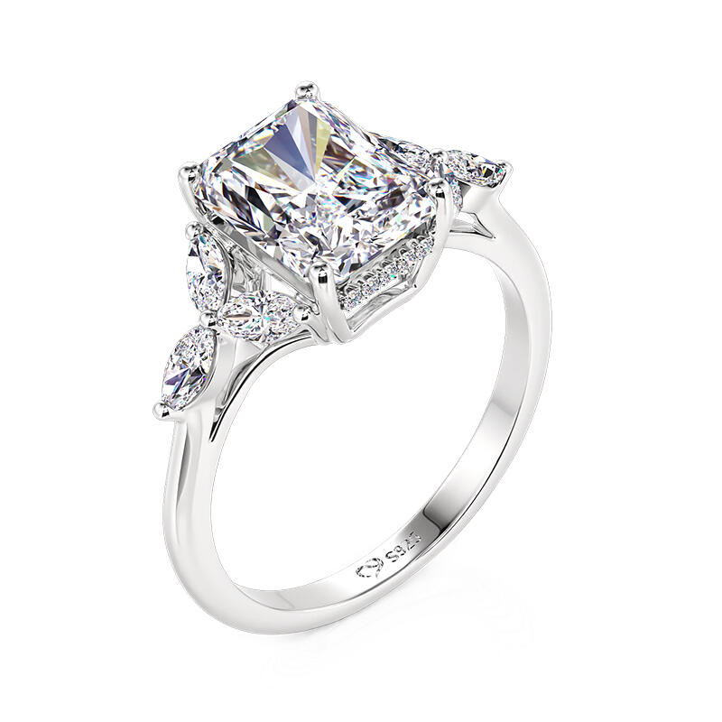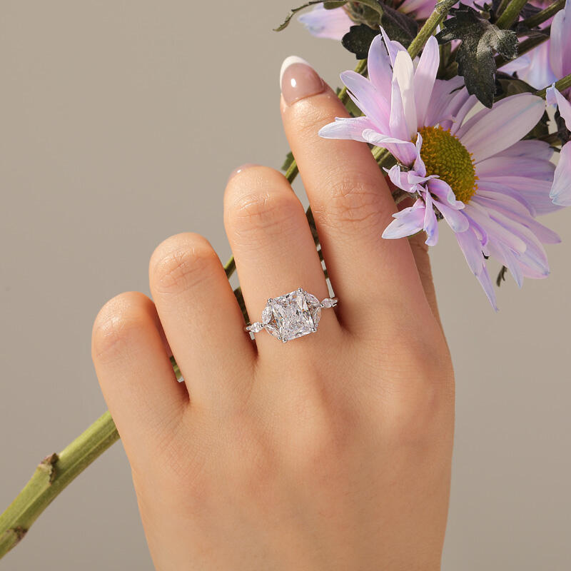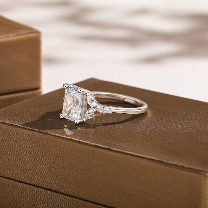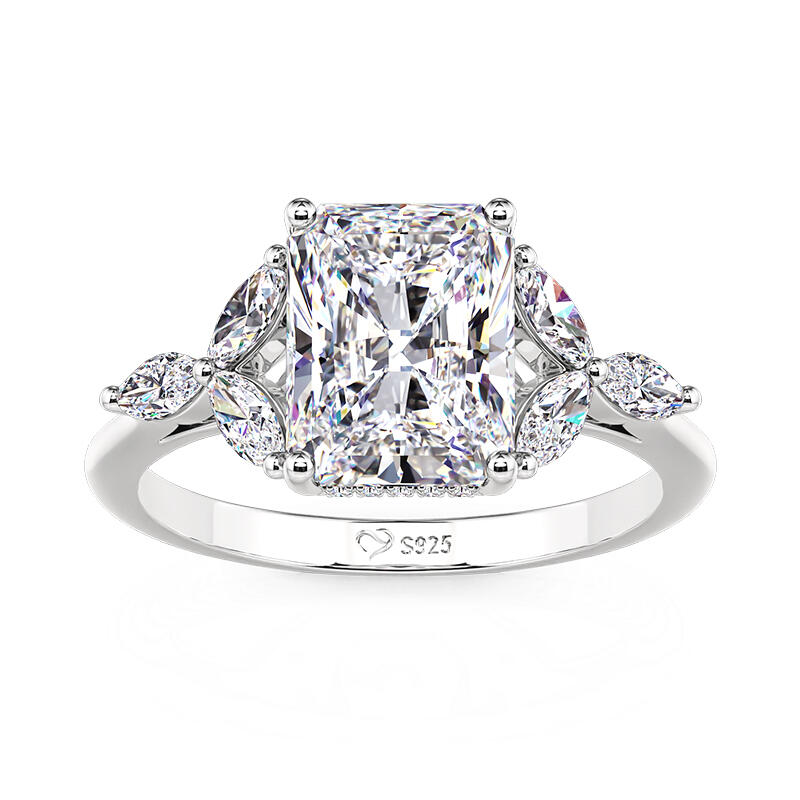 Jeulia Radiant Schliff Blatt Blütenblatt Pavé Fassung Verlobungsring