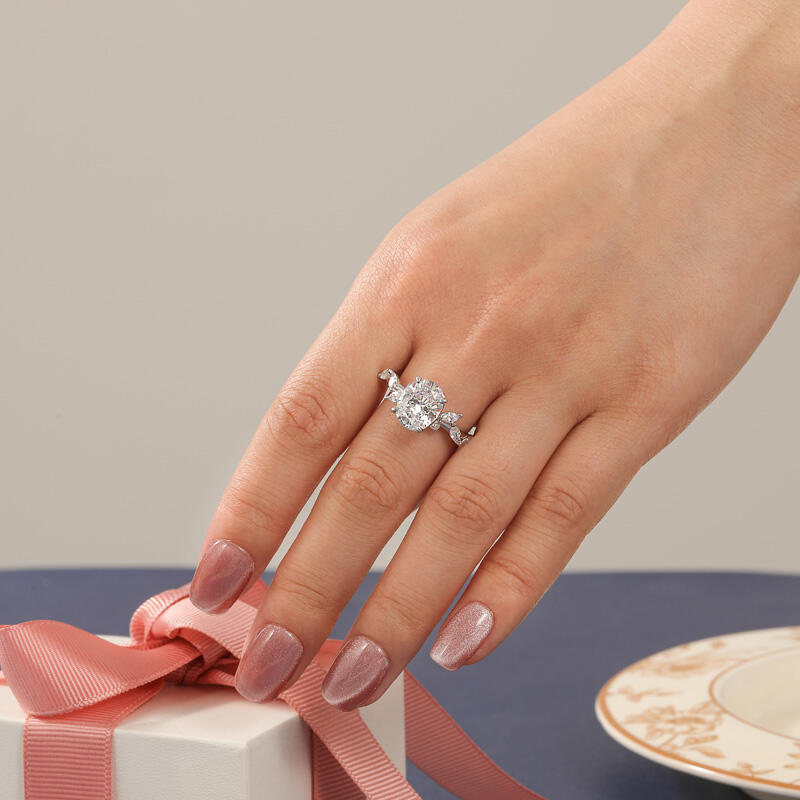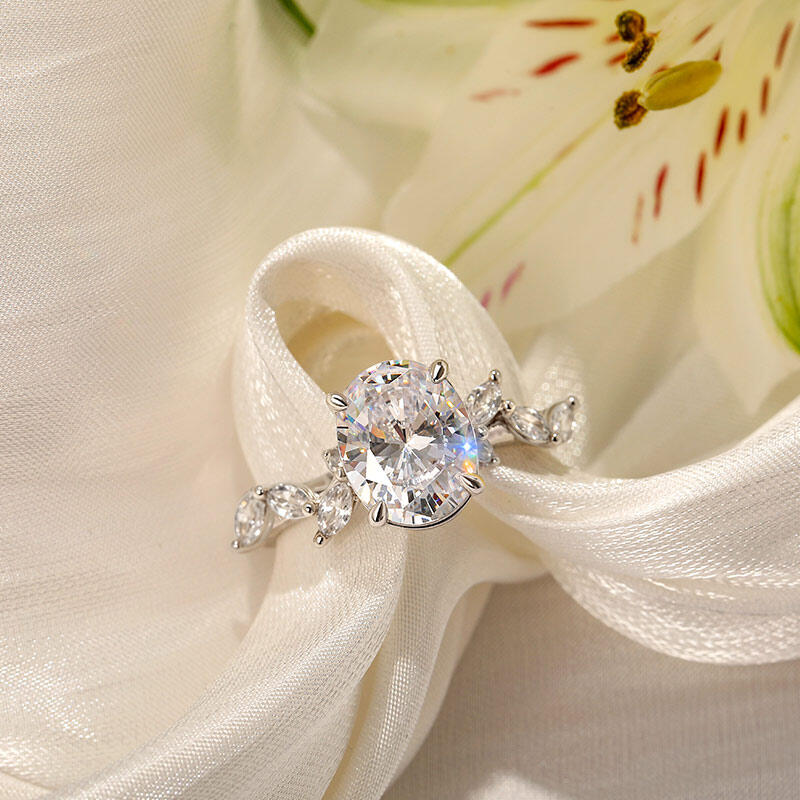 Jeulia Ovalschliff Cluster Verlobungsring Sterling Silber