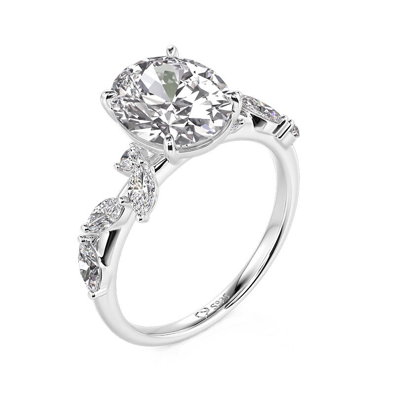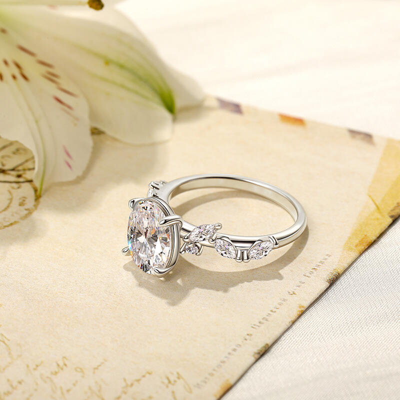 Wer eine einzigartige und fesselnde Verlobungsring sucht, wird sich für unseren ovalen Cluster-Verlobungsring entscheiden. Im Zentrum dieses Cluster-Verlobungsring befindet sich ein großer ovaler Stein. Die Cluster-Einlage rund um den zentralen Stein verleiht dem Design eine dynamische und visuell beeindruckende Ästhetik. Diese Seitenteile verstärken nicht nur den Glanz des zentralen Steins, sondern verleihen auch dem gesamten Design eine gewisse Tiefe und Komplexität. Mit seiner modernen Interpretation eines klassischen Designs wird der ovale Cluster-Verlobungsring sicherlich jahrelang geschätzt werden.