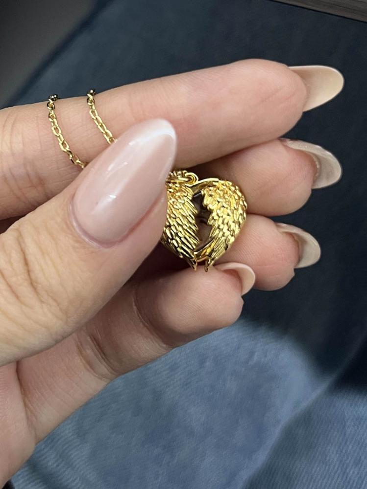 Jeulia Personalisierte Goldene Engel-Flügel Herz Foto Halskette