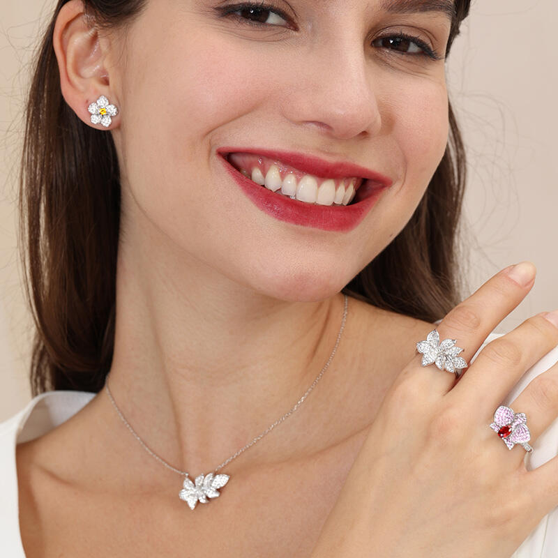 Jeulia Petal Bloom Design Sterling Silber Halskette