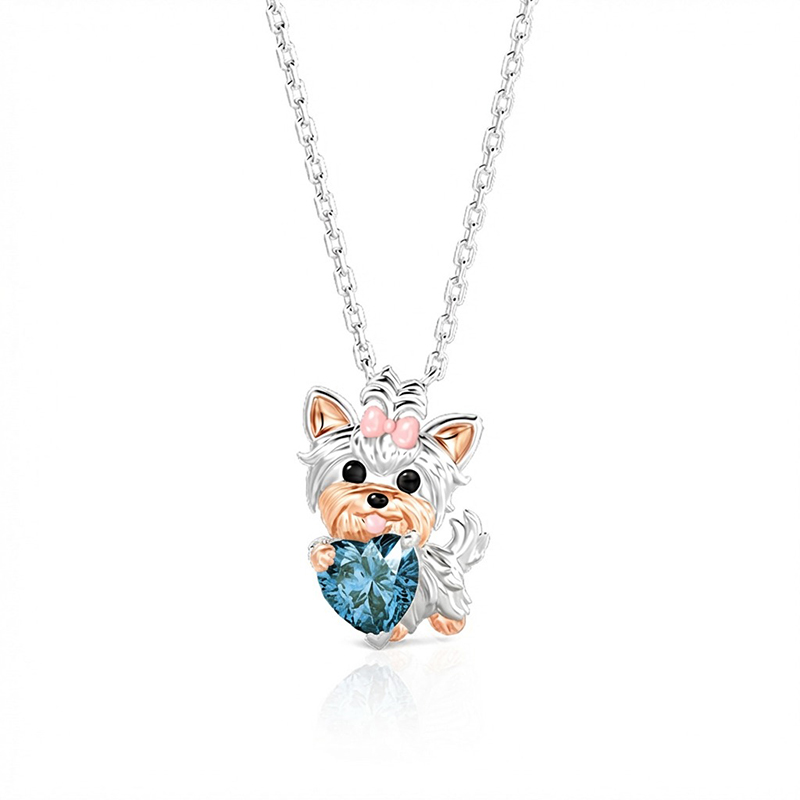 Jeulia Petland Personalisierter Geburtsstein Yorkshire Terrier Halskette
