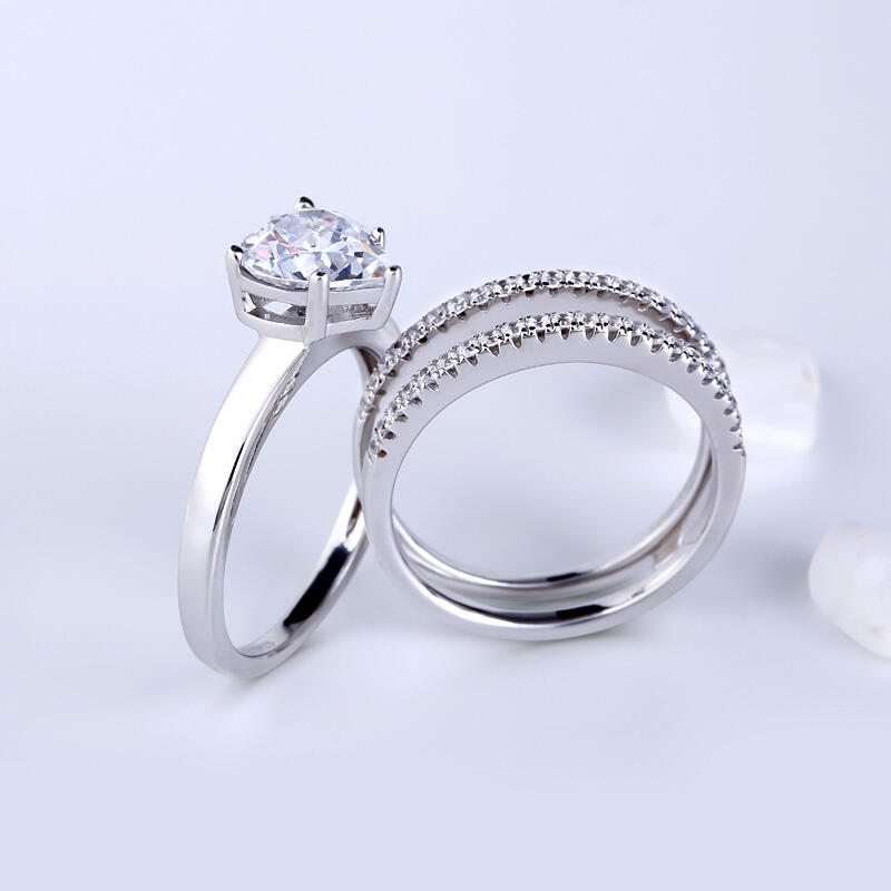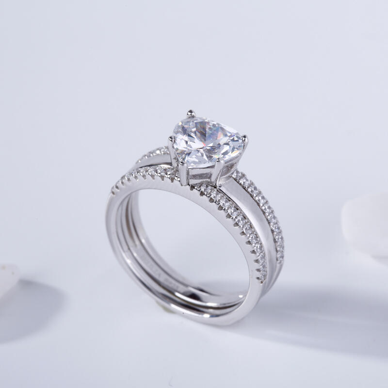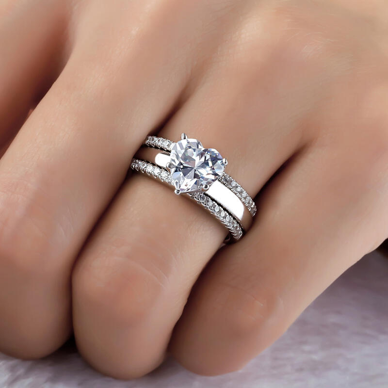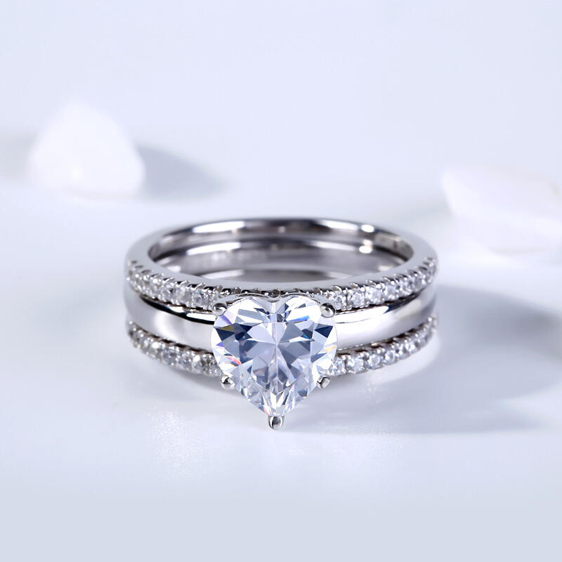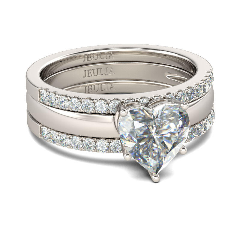 Jeulia Herzschliff Sterling Silber Enhancer Ring Set