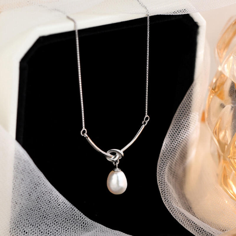 Jeulia Einfache Knoten Design Perle Sterling Silber Halskette