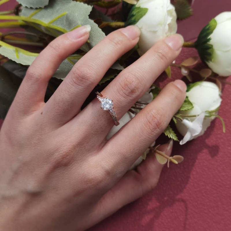 Jeulia Schlichter Rundschliff Versprechensring mit Twist Design in Roségold