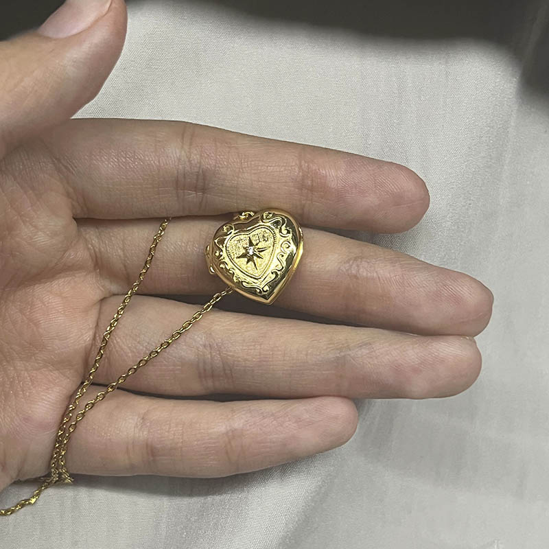 Jeulia Stern Entwurf Herz personalisiertes Foto Sterling Silber Medaillon Halskette mit Geburtsstein