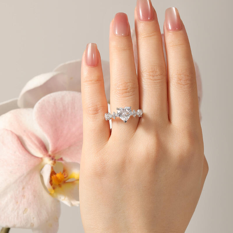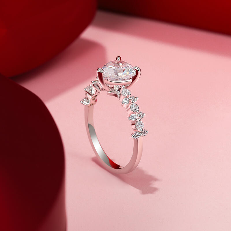 Mit dem herzförmigen Hauptstein als Mittelpunkt vermittelt dieser personalisierte Herzversprechen-Ring mit Sternschnuppen-Design starke romantische Gefühle und symbolisiert perfekt Liebe und Engagement. Die kleinen runden Steine an der Seite sind geschickt miteinander verwoben und erzeugen ein dynamisches Design wie Sternschnuppen, ähnlich funkelnden Sternen am Sternenhimmel, was dem Herzring einen Hauch von Traum und Fantasie verleiht. Dieser Herzversprechen-Ring ist nicht nur in seinem Design einzigartig, sondern bietet auch Anpassungsmöglichkeiten für die Steinfarbe und die Metallfarbe, sodass jeder Träger die Kombination wählen kann, die am besten zu seinem Stil und seiner Persönlichkeit passt. Ob als Verlobungsring oder als Erinnerungsgeschenk, dieser Versprechensring wird eine kostbare Aufzeichnung sein, die jeden Moment zählen lässt.