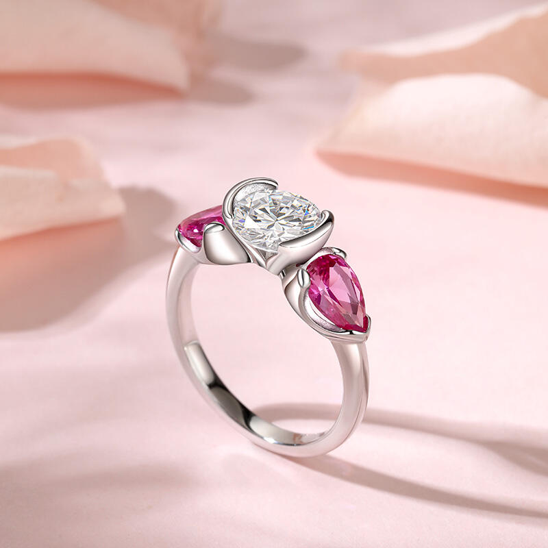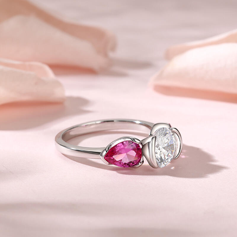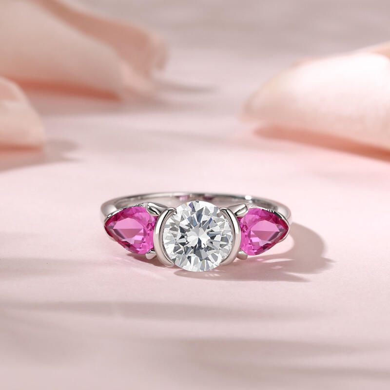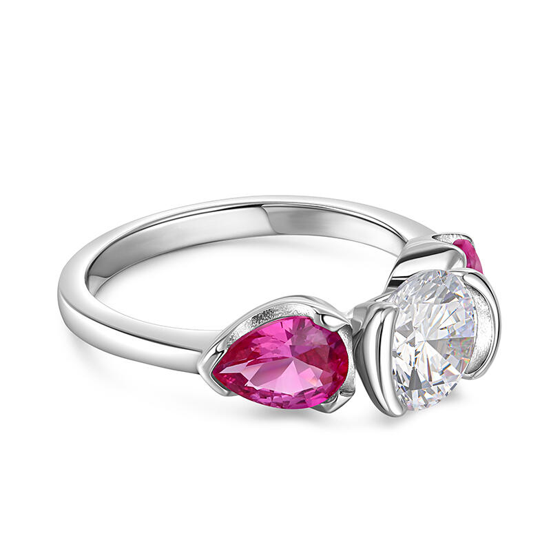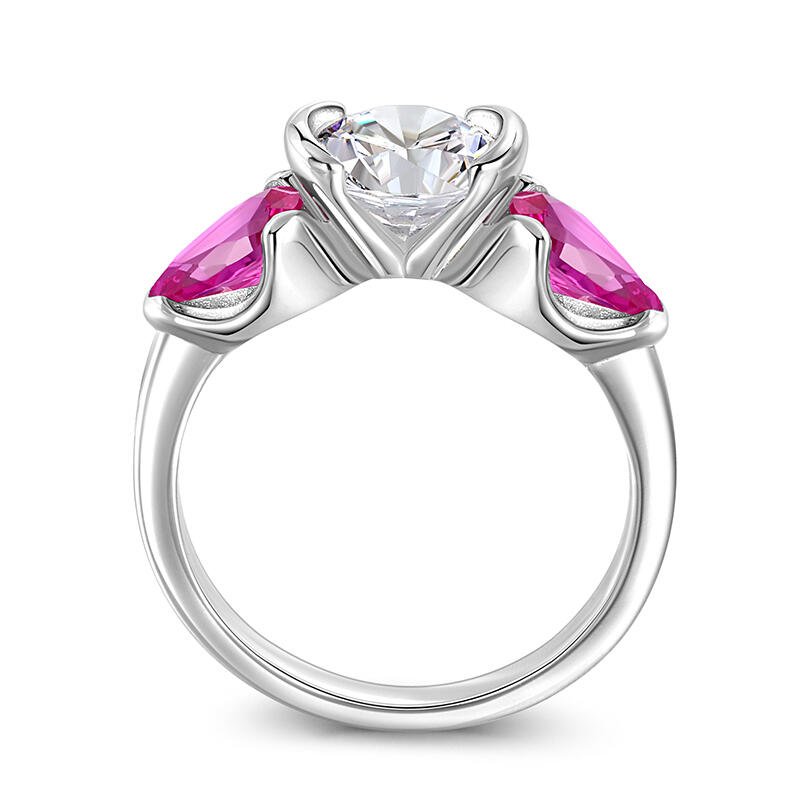 Jeulia Drei Stein Rundschliff Sterling Silber Verlobungsring