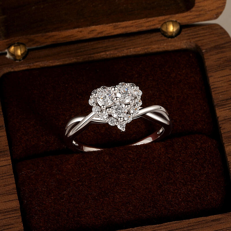 Der Jeulia Herz-Cluster-Versprechensring vereint Romantik und moderne Ästhetik. Aus Sterling-Silber mit funkelnder Steinanordnung in Herzform und kunstvollem Twist-Design - ein zeitloses Zeichen Ihrer Verbundenheit.