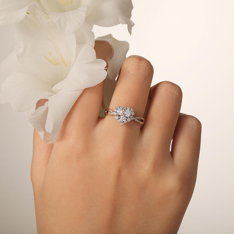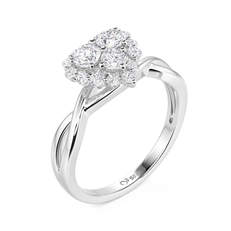 Jeulia Twist Cluster Herz Versprechensring Sterling Silber