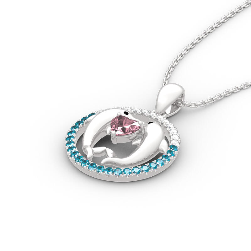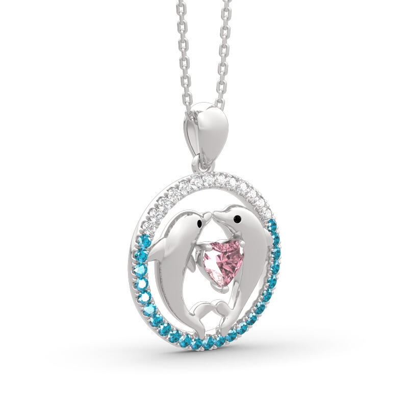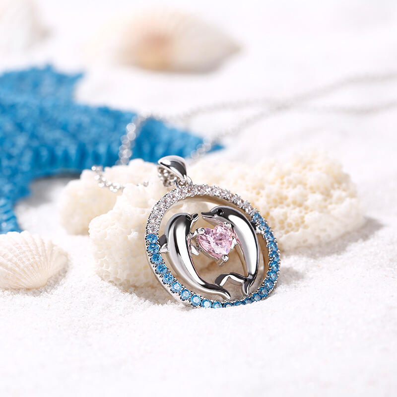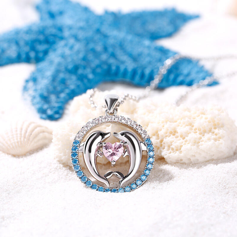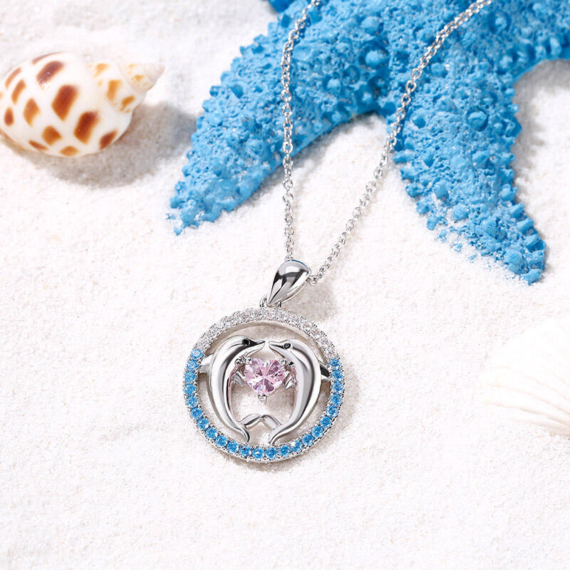 Jeulia Zwei Tanzende Delphine Herzschliff Sterling Silber Halskette
